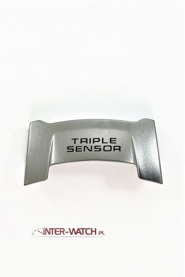 Oryginalny metalowy adapter - link do mocowania paska Casio PAG-80-1. Adapter z czarnym napisem "Triple Sensor" umożliwia zamocowanie paska gumowego zamiast paska parcianego lub bransolety od strony godz. 12. Stalowy adapter- "End Link" w kolorze ciemny grafit do modeli zegarków Casio: