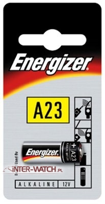 Bateria A23 Energizer. Bateria alkaliczno-manganowa o napięciu 12 Volt. Bateria do pilotów samochodowych, immobilizerów, pilotów zdalnego sterowania oraz innych urządzeń. Wysoka jakość i parametry techniczne zapewniające długotrwałe zasilanie. Długi termin przydatności do użycia. Bateria Energizer A23 zastępuje baterie o oznaczeniach :MN21, 23A, 8LR932, V23GA, LRV08, EL12, L1028.