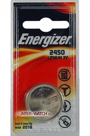 Bateria litowa CR2450 Energizer, stosowana zgodnie z danymi technicznymi zegarka lub innego urządzenia pozwala na długotrwałe zasilanie oraz obniża koszty eksploatacji. Jeżeli będzie to konieczne to prosimy przesłać zapytanie - jesteśmy do Państwa dyspozycji i służymy pomocą. Oferujemy tylko najlepsze baterie litowe CR i BR.