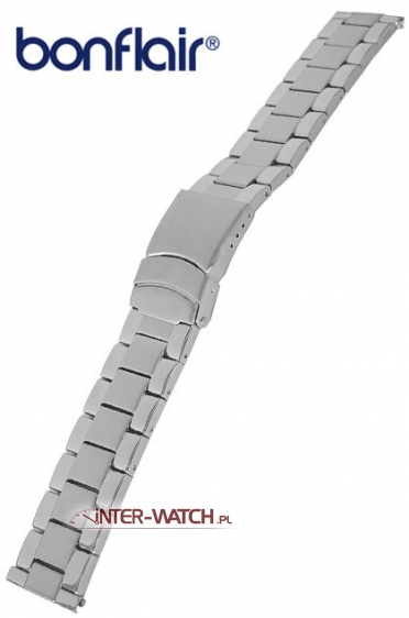 Bransoleta do zegarka 22 mm Bonflair, standardowa solidna bransoleta do męskiego zegarka wykonana ze stali. Klasyczna bransoleta do zegarka szerokości 22,0 mm przy kopercie. Bransoletę można dopasować - zwężać do szerokości 20,00 mm. Zamek standardowy z dodatkowym zabezpieczeniem, bransoleta ozdobnie polerowana i matowana na całej długości, możliwa regulacja długości bransolety poprzez regulację zamka lub skracanie.