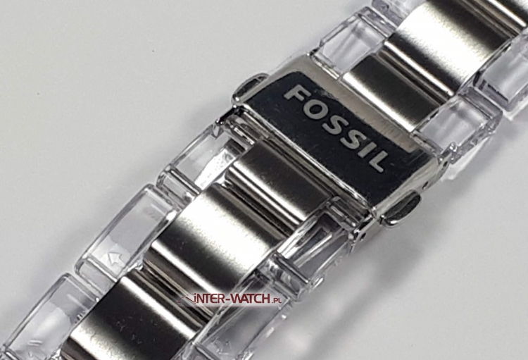 Stalowa bransoleta do zegarka Fossil ES-2821, oryginalna bransoleta do zegarka Fossil ES2821. Bransoleta z Plexi łaczona z metalowymi ogniwami, zamek skrzydełkowy z logo Fossil, bransoleta dedykowana do modeli :