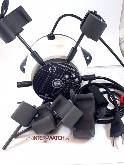 Bergeon Cyklomat 7803-230 to precyzyjne urządzenie służące do testowania mechanizmów automatycznych zegarków. Dzięki swojej konstrukcji, może pomieścić do 6 zegarków jednocześnie, co pozwala na efektywne testowanie większej liczby mechanizmów w krótszym czasie. Urządzenie obraca zegarki z prędkością 4 obrotów na minutę, co symuluje naturalne noszenie zegarka na nadgarstku, umożliwiając dokładną ocenę działania mechanizmu.