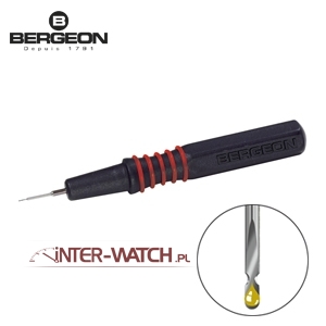 Oliwiacz ręczny Bergeon HH w wersji 0,18 mm to profesjonalne narzędzie do precyzyjnego dozowania oleju w zegarmistrzostwie oraz przy drobnych mechanizmach wymagających dokładności. Końcówka ze stali nierdzewnej, elektropolerowana, zapewnia najwyższą precyzję, a ergonomiczny uchwyt z czerwonym pierścieniem ułatwia identyfikację i komfort pracy. Precyzyjne pozycjonowanie kropli pozwala na aplikację zarówno pełnych, jak i połówek kropli oleju, co czyni narzędzie niezastąpionym w serwisie zegarków.