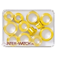 W skład zestawu wchodzą panewki o średnicach otworów: 3,70 mm, 4,50 mm, 6,00 mm, 7,50 mm, 8,70 mm i 9,60 mm – po dwie sztuki z każdej. Dzięki temu komplet doskonale sprawdza się zarówno przy naprawach, jak i konserwacji starszych lub zabytkowych zegarów. Mosiężne tuleje charakteryzują się odpornością na korozję i długą żywotnością, co czyni je idealnym wyborem do precyzyjnych zastosowań zegarmistrzowskich.