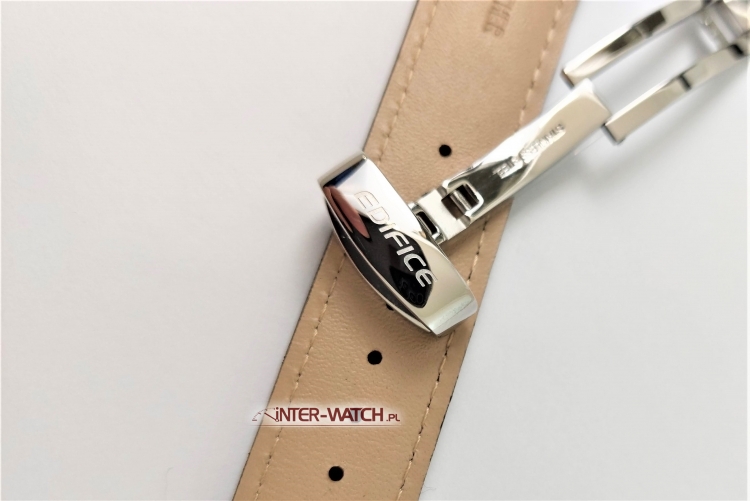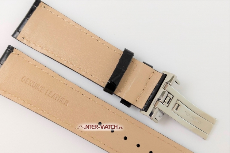 Oryginalny pasek do Casio EFR-520L-1AV, polecamy czarny skórzany pasek przeszywany czarną nitką po obwodzie do Casio EFR-520L Edifice, na wierzchu trwale tłoczony wzór skóry Aligatora, zamek stalowy bransoletowy sygnowany Pasek do zegarka Casio EFR-520L z klasycznym mocowaniem 22 mm do modeli Casio: