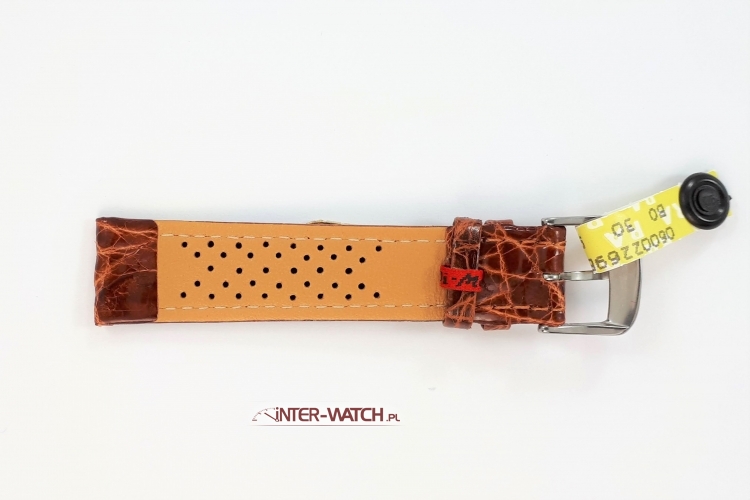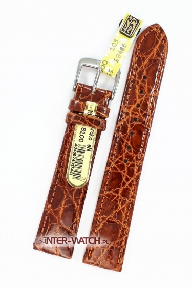 Pasek do zegarka Di-Modell Krokodil Genaht 1610.1118 szerokości 18 mm przy kopercie, kolor No.11 - brązowy pasek do zegarka z prawdziwego Krokodyla. Luksusowy pasek Di-Modell Krokodil Genaht z ekskluzywnej kolekcji Noble House. Antyalergiczny pasek do zegarka wykonany ręcznie z prawdziwej skóry Krokodyla specjalnie selekcjonowanej. Zastosowany patentowy system Areo-Futter który zapobiega akumulowaniu się wilgoci wewnątrz paska co przedłuża jego żywotność i poprawia komfort użytkowania, oraz patentowe zabezpieczenie przed przesuwaniem się szlufki. Pasek do zegarka Di-Modell Krokodil jest estetyczny, trwały a jednocześnie miękki i bardzo wygodny w użytkowaniu. Antyalergiczny pasek do zegarka przeszywany na całej długości i wykańczany po bokach ozdobnym szwem. Szerokość paska nieznacznie zwężana na długości przy klamerce do 16 mm. Klamerka stalowa - sygnowana, stalowa lub złocona do wyboru. Pasek Di-Modell Krokodil Genaht to ekskluzywny i elegancki pasek do zegarka dostępny w długości standardowej L. Prosimy o dokładne sprawdzenie szerokości mocowania paska przy kopercie zegarka oraz długości całkowitej paska. Oferujemy egzotyczne paski do zegarków dobrze wykonane.