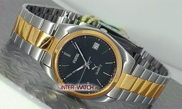 Zegarek Puma Sporty Quartz, kwarcowy męski zegarek. Oryginalny zegarek Puma, koperta i bransoleta wykonane ze stali, koperta cześciowo złocona elektrogalwanicznie. Szkło kryształowe, zakręcana koronka, klasa wodoszczelności WR. Oferowany zegarek Puma to solidny męski zegarek. Gwarancja 3 lata i przesyłka gratis.