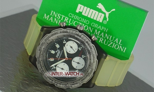 Zegarek Puma Sporty Quartz Chronograph, kwarcowy męski zegarek Made in Japan. Oryginalny zegarek Puma, koperta i pasek wykonane z tworzywa, na kopercie obrotowy pierścien z podziałką minut. Szkło kryształowe, Podwyższona klasa wodoszczelności WR100 / 10 Bar. Oferowany zegarek Puma to solidny męski zegarek. Gwarancja 3 lata i przesyłka gratis.