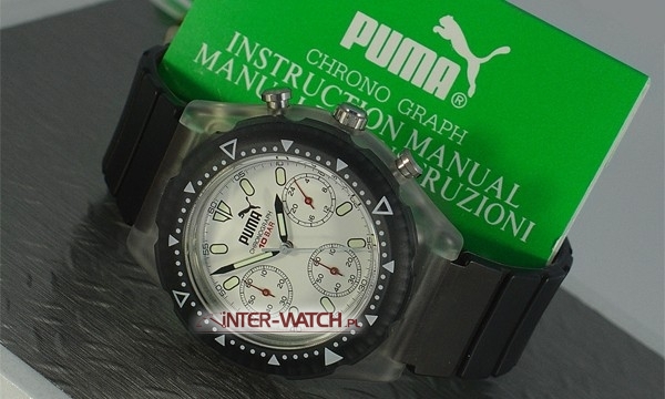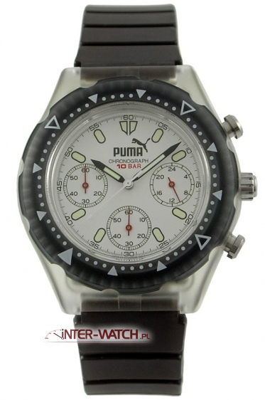 Zegarek Puma Sporty Quartz Chronograph, kwarcowy męski zegarek Made in Japan. Oryginalny zegarek Puma, koperta i pasek wykonane z tworzywa, na kopercie obrotowy pierścien z podziałką minut. Szkło kryształowe, Podwyższona klasa wodoszczelności WR100 / 10 Bar. Oferowany zegarek Puma to solidny męski zegarek. Gwarancja 3 lata i przesyłka gratis.
