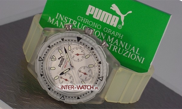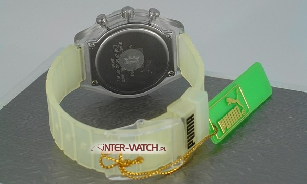 Zegarek Puma Sporty Quartz Chronograph, kwarcowy męski zegarek Made in Japan. Oryginalny zegarek Puma, koperta i pasek wykonane z tworzywa, na kopercie obrotowy pierścien z podziałką minut. Szkło kryształowe, Podwyższona klasa wodoszczelności WR100 / 10 Bar. Oferowany zegarek Puma to solidny męski zegarek. Gwarancja 3 lata i przesyłka gratis.