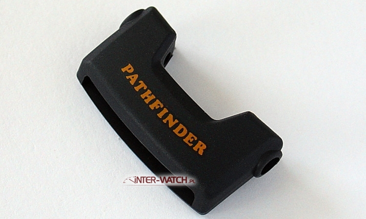 Metalowy adapter do mocowania paska Casio PAW-1300G-1V. Adapter umożliwia zamocowanie jednoczęściowego paska parcianego przewlekanego pod zegarkiem . Adapter z POMARAŃCZOWYM napisem "PATHFINDER" mocowany do koperty w DOLNYM położeniu od godz.6 . Adapter- przelotka do modeli zegarków Casio: