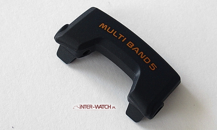 Adapter do mocowania paska Casio PAW-1300G-1V. Adapter umożliwia zamocowanie jednoczęściowego paska parcianego przewlekanego pod zegarkiem . Adapter z POMARAŃCZOWYM napisem "MULTI BAND 5" mocowany do koperty w GÓRNYM położeniu od godz.12 . Adapter- przelotka do modeli zegarków Casio: