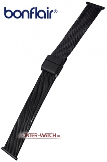 Bransoleta do zegarka 22 mm Bonflair, dwuczęściowa uniwersalna bransoleta do zegarka wykonana ze stalowej plecionki - siatki drobno pleciona. Klasyczna bransoleta do zegarka szerokości 22 mm przy kopercie z możliwością zwężania - dopasowania do 18 mm szerokości. Zamek standardowy dwuczęściowy, bransoleta trwale oxydowana PVD oraz ozdobnie polerowana i matowana na całej długości, możliwa regulacja - skracanie lub wydłużanie długości bransolety poprzez przesuwanie zamka.