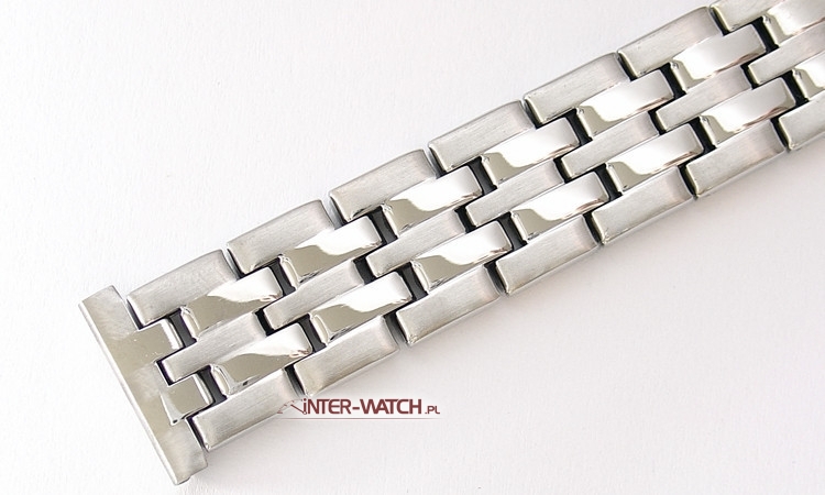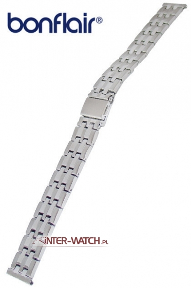 Bransoleta do zegarka 16 mm niemieckiej firmy Bonflair, solidna bransoleta do zegarka damskiego wykonana ze stali 316L. Masywna jednoczęściowa bransoleta do zegarka szerokości 16,00 mm przy kopercie, bransoletę można dopasować - zwężać do szerokości 14,00 mm. Zamek skrzydełkowy krótki, pełne ogniwa bransolety, bransoleta ozdobnie polerowana i matowana na całej długości, możliwa regulacja - skracanie bransolety poprzez usuwanie ogniw. Bransoleta dedykowana do damskich markowych zegarków.
