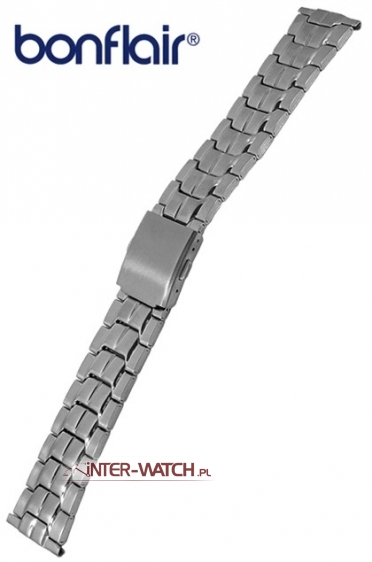 Bransoleta 22-18 mm Bonflair, standardowa bransoleta do zegarka męskiego wykonana ze stali. Klasyczna jednoczęściowa bransoleta do zegarka szerokości 22,0 mm przy kopercie. Bransoletę można dopasować - zwężać do szerokości 18,00 mm. Zamek skrzydełkowy, bransoleta ozdobnie matowana na całej długości możliwe skracanie lub wydłużanie bransolety poprzez regulacje zamka oraz montaż lub demontaż ogniw .
