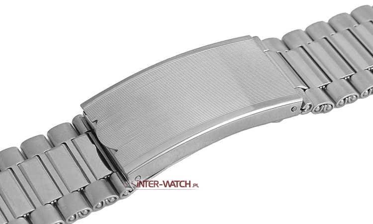 Bransoleta do zegarka Bonflair, standardowa bransoleta do zegarka wykonana ze stali. Klasyczna bransoleta do zegarka szerokości 22,0 mm przy kopercie. Bransoletę można dopasować - zwężać do szerokości 18,00 mm. Zamek standardowy z elastyczną samoregulacją długości, bransoleta ozdobnie polerowana i matowana na całej długości.