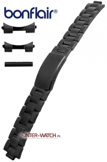 Bransoleta do zegarka Bonflair Multi, uniwersalna bransoleta do zegarka wykonana ze stali. Klasyczna bransoleta do zegarka szerokości 18, 20 lub 22,00 mm przy kopercie. Bransoleta wyposażona w uniwersalne końcówki umożliwjające mocowanie do kopert o różnych kształtach i szerokościach. Bransoletę można dopasować - zwężać do szerokości 18,00 mm. Zamek standardowy,bransoleta pokryta powłoką IP w kolorze czarnym, powłoka trwała i efektowna, bransoleta ozdobnie polerowana i matowana na całej długości, możliwa regulacja - skracanie lub wydłużanie długości bransolety poprzez regulacje zamka i usuwanie lub dokładanie ogniw.