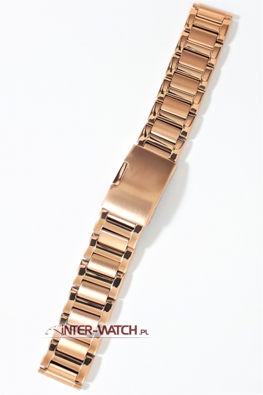 Bransoleta do zegarka Bonflair, standardowa i solidna bransoleta do zegarka wykonana ze stali PVD Rose. Klasyczna bransoleta do zegarka szerokości 24 mm przy kopercie. Bransoletę można dopasować - zwężać do szerokości 22 mm. Zamek klasyczny, pełne kute ogniwa bransolety, bransoleta różowa PVD oraz ozdobnie polerowana i matowana na całej długości, możliwa regulacja długości bransolety.