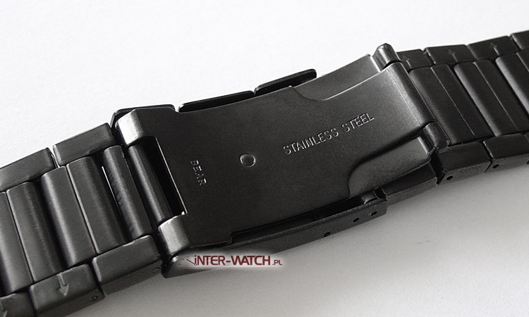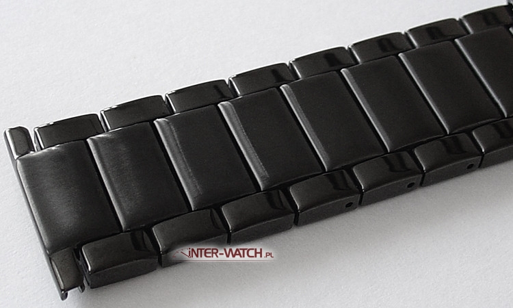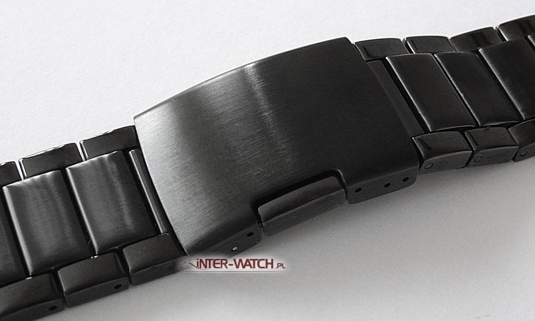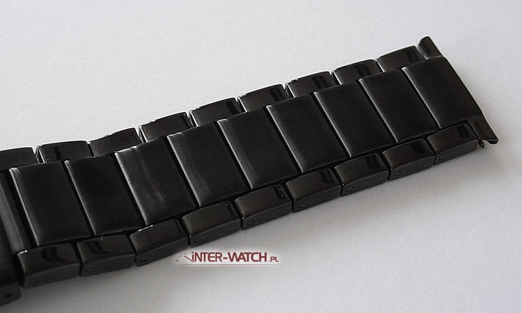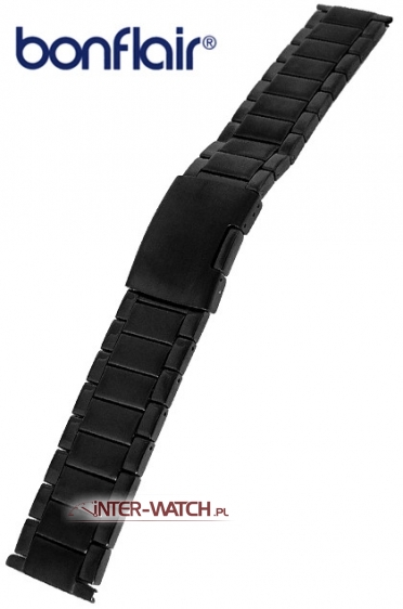 Bransoleta do zegarka 24 mm Bonflair, uniwersalna bransoleta do zegarka wykonana ze stali. Klasyczna bransoleta do zegarka 24,00 mm przy kopercie. Bransoletę można dopasować - zwężać do szerokości 22,00 mm. Zamek boczny, bransoleta pokryta powłoką IP w kolorze czarnym, powłoka trwała i efektowna, bransoleta ozdobnie polerowana i matowana na całej długości, ogniwa pełne -kryte z boku, możliwa regulacja - skracanie lub wydłużanie długości bransolety poprzez regulacje zamka i usuwanie lub dokładanie ogniw.