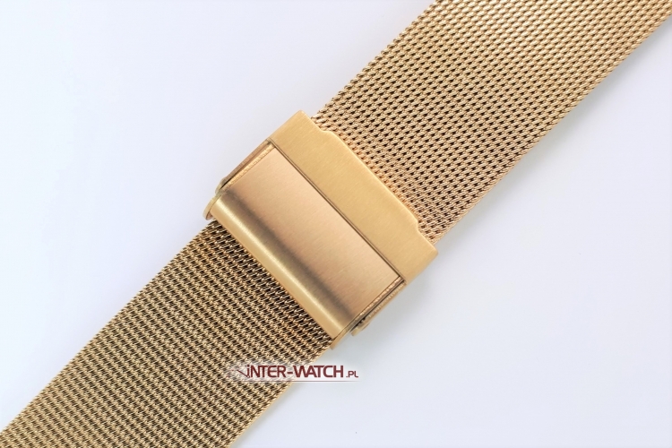 Bransoleta do zegarka Bonflair złocona bransoleta do zegarka, dwuczęściowa uniwersalna bransoleta do zegarka wykonana ze stalowej plecionki - siatki. Klasyczna bransoleta do zegarka szerokości 18mm przy kopercie. Zamek standardowy dwuczęściowy z zabezpieczeniem, bransoleta złocona PVD na całej długości, możliwa regulacja - skracanie lub wydłużanie długości bransolety poprzez przesuwanie zamka.