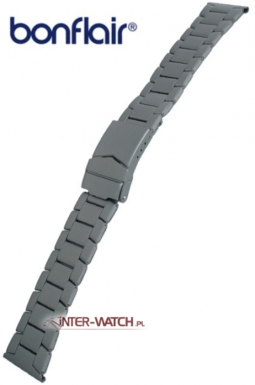 Bransoleta do zegarka Bonflair, standardowa i solidna bransoleta do zegarka wykonana z tytanu. Klasyczna bransoleta do zegarka szerokości 22,0 mm przy kopercie. Bransoletę można dopasować - zwężać na szerokości 22-20,00 mm. Zamek standardowy z dodatkowym zabezpieczeniem, bransoleta ozdobnie matowana na całej długości, możliwa regulacja długości bransolety. Tytanowe bransolety do zegarków nie powodują reakcji alergologicznych - są w pełni antyalergiczne.