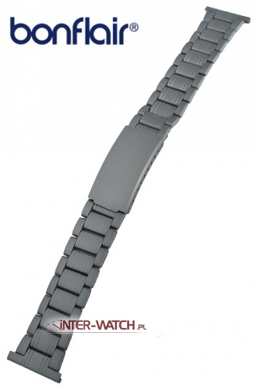 Tytanowa bransoleta do zegarka Bonflair 206017, standardowa solidna bransoleta do zegarka wykonana z tytanu. Klasyczna bransoleta do zegarka szerokości 20,0 mm przy kopercie. Bransoletę można dowolnie dopasować - zwężać w zakresach szerokości 22-18,0 mm. Zamek standardowy tytanowy, bransoleta częściowo matowana i polerowana na całej długości, możliwa regulacja długości bransolety. Tytanowe bransolety do zegarków nie powodują reakcji alergologicznych - są w pełni antyalergiczne.
