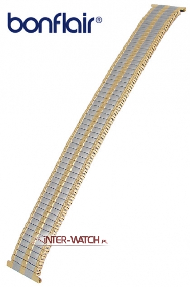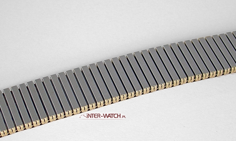 Elastyczna bransoleta do męskiego zegarka wykonana ze stali. Jednoczęściowa bransoleta do zegarka o szerokości 22,0 mm przy kopercie z możliwością dopasowania-zwężenia do 18,0 mm. Bardzo trwała i solidna konstrukcja bransolety w której zostosowano klamry skrętne jako elementy elastyczne. Bransoleta nie "szczypie" nadgarstka podczas użytkowania. Powierzchnia bransolety częściowo złocona na PVD Bi-Color oraz ozdobnie polerowana. Możliwość skracania i wydłużania bransolety.