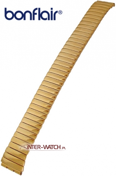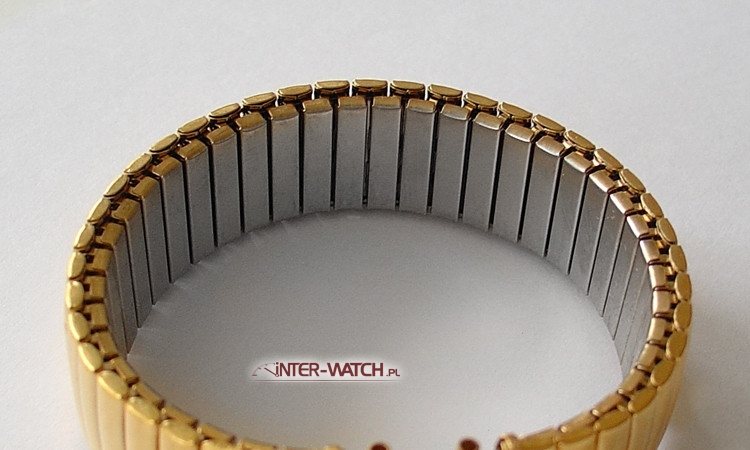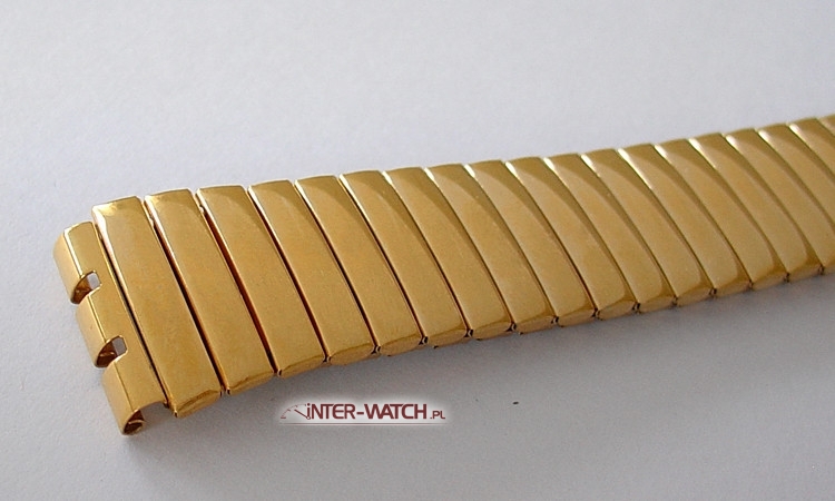 Bransoleta do zegarka Swatch 17 mm zamiennik. Rozciągana jednoczęściowa bransoleta Bonflex pasująca do zegarka Swatch. Bardzo trwała i solidna konstrukcja bransolety w której zostosowano klamry skrętne jako elementy elastyczne. Bransoleta nie "szczypie" nadgarstka podczas użytkowania. Zewnętrzna powierzchnia bransolety złocona PVD oraz ozdobnie polerowana. Możliwość skracania i wydłużania bransolety.