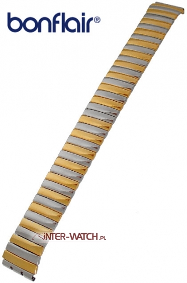 Bransoleta Bonflex do zegarka Swatch 17,0 mm zamiennik. Rozciągana jednoczęściowa bransoleta pasująca do zegarka Swatch. Bardzo trwała i solidna konstrukcja bransolety w której zostosowano klamry skrętne jako elementy elastyczne. Bransoleta nie "szczypie" nadgarstka podczas użytkowania. Powierzchnia bransolety częściowo złocona PVD Bi-Color oraz ozdobnie polerowana. Możliwość skracania i wydłużania bransolety.