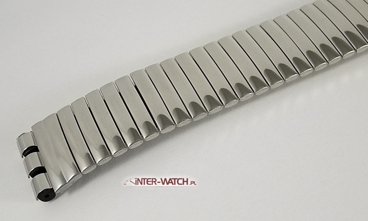Bransoleta Bonflex do zegarka Swatch 19,0 mm zamiennik. Rozciągana jednoczęściowa bransoleta pasująca do zegarka Swatch. Bardzo trwała i solidna konstrukcja bransolety w której zostosowano klamry skrętne jako elementy elastyczne. Bransoleta nie "szczypie" nadgarstka podczas użytkowania. Zewnętrzna powierzchnia bransolety ozdobnie polerowana. Możliwość skracania i wydłużania bransolety.