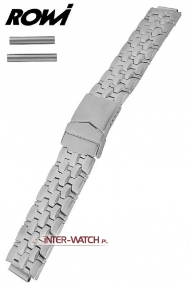 Bransoleta do zegarka ROWI Multiend, uniwersalna bransoleta do zegarka wykonana ze stali 316L. Jednoczęściowa bransoleta do zegarka szerokości mocowania 20 lub 22,00 mm przy kopercie. Bransoleta wyposażona w proste maskownice - adaptery rurkowe umożliwjające mocowanie do kopert o szerokościach 20 i 22 mm. Adaptery bransolety można dopasować - zwężać mocowanie do szerokości 20,00 mm dowolnie. Zamek standardowy z dodatkowym zabezpieczeniem, ogniwa bransolety kryte na bocznych powierzchniach, bransoleta stalowa oraz ozdobnie polerowana i matowana na całej długości, możliwa regulacja - skracanie lub wydłużanie długości bransolety poprzez regulację zamka oraz usuwanie lub dokładanie ogniw bransolety.