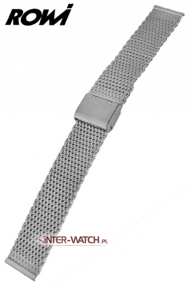 Bransoleta ROWI stalowa bransoleta do zegarka 20 mm. Dwuczęściowa uniwersalna bransoleta do zegarka wykonana ze stalowej plecionki - siatki o grubym solidnym splocie. Klasyczna bransoleta do zegarka szerokości 20,00 mm przy kopercie oraz przy zamku. Zamek krótki dwuczęsciowy, bransoleta ozdobnie polerowana i matowana na całej długości, możliwa regulacja - skracanie  długości bransolety poprzez przesuwanie zamka .