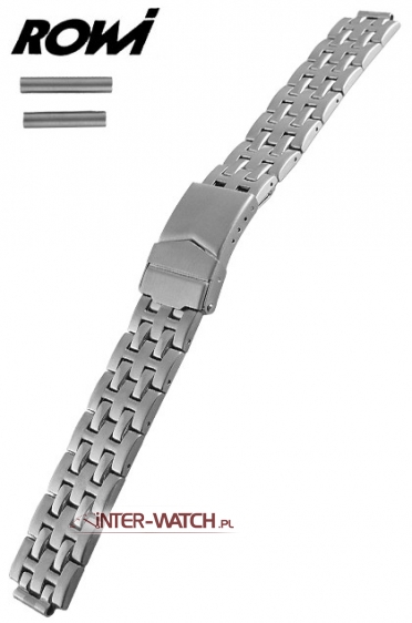 Bransoleta do zegarka ROWI Multiend, uniwersalna bransoleta do zegarka wykonana ze stali 316L. Jednoczęściowa bransoleta do zegarka szerokości mocowania 18 lub 20,00 mm przy kopercie. Bransoleta wyposażona w proste maskownice - adaptery rurkowe umożliwjające mocowanie do kopert o szerokościach 18 i 20 mm. Adaptery bransolety można dopasować - zwężać mocowanie do szerokości 18,00 mm dowolnie. Zamek standardowy z dodatkowym zabezpieczeniem, ogniwa bransolety kryte na bocznych powierzchniach, bransoleta stalowa oraz ozdobnie polerowana i matowana na całej długości, możliwa regulacja - skracanie lub wydłużanie długości bransolety poprzez regulację zamka oraz usuwanie lub dokładanie ogniw bransolety.