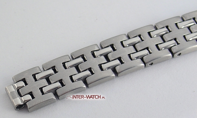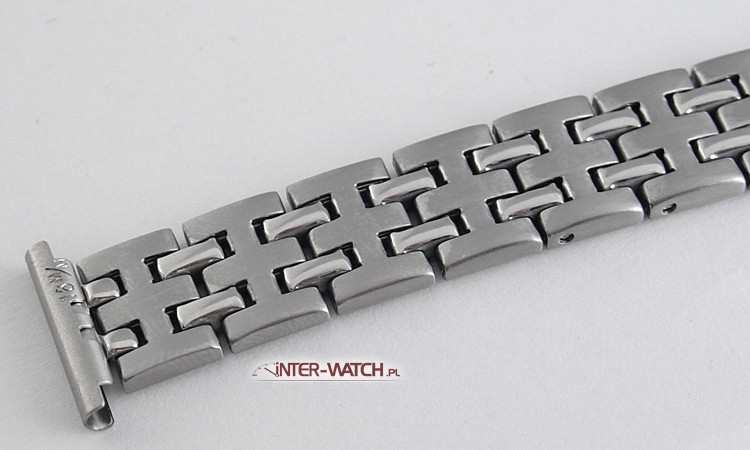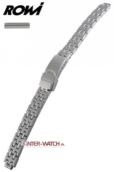 Bransoleta do zegarka niemieckiej firmy ROWI, solidna bransoleta do zegarka damskiego wykonana ze stali 316L. Jednoczęściowa bransoleta do zegarka szerokości mocowania 16,00 mm przy kopercie, bransoletę można dopasować - zwężać do szerokości 8,00 mm. bransoleta wyposażona w 2 adaptery rurkowe do dopasowania szerokości. Zamek standardowy z dodatkowym zabezpieczeniemi, pełne ogniwa bransolety krytymi powierzchniami bocznymi, bransoleta ozdobnie polerowana i matowana na całej długości, możliwa regulacja - skracanie bransolety poprzez usuwanie ogniw. Bransoleta dedykowana do damskich markowych zegarków.