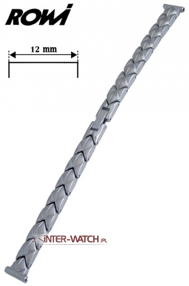 Bransoleta do zegarka niemieckiej firmy ROWI, ozdobna bransoleta do zegarka damskiego wykonana ze stali. Klasyczna bransoleta do zegarka szerokości 12,00 mm przy kopercie, bransoletę można dopasować - zwężać do szerokości 8,00 mm. Zamek standardowy, pełne ogniwa bransolety, bransoleta ozdobnie polerowana i matowana na całej długości, możliwa regulacja - skracanie lub wydłużanie bransolety poprzez usuwanie lub dokładanie ogniw bransolety.