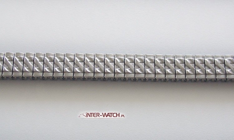 Bransoleta do zegarka niemieckiej firmy ROWI. Elastyczna bransoleta do damskiego zegarka wykonana ze stali. Jednoczęściowa bransoleta do zegarka o szerokości mocowania 12,0 mm przy kopercie z możliwością dopasowania-zwężenia do 8,0 mm. Bardzo trwała i solidna konstrukcja bransolety w której zostosowano klamry skrętne jako elementy elastyczne. Bransoleta nie "szczypie" nadgarstka podczas użytkowania. Powierzchnia bransolety przetłaczana oraz ozdobnie polerowana. Możliwość skracania i wydłużania bransolety.