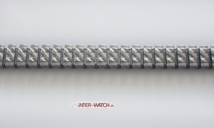 Bransoleta do zegarka niemieckiej firmy ROWI. Elastyczna bransoleta do damskiego zegarka wykonana ze stali. Jednoczęściowa bransoleta do zegarka o szerokości mocowania 12,0 mm przy kopercie z możliwością dopasowania-zwężenia do 8,0 mm. Bardzo trwała i solidna konstrukcja bransolety w której zostosowano klamry skrętne jako elementy elastyczne. Bransoleta nie "szczypie" nadgarstka podczas użytkowania. Powierzchnia bransolety przetłaczana oraz ozdobnie polerowana. Możliwość skracania i wydłużania bransolety.