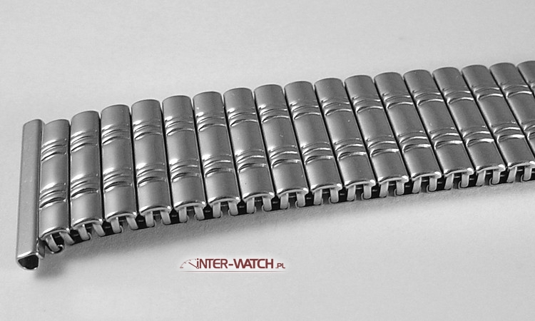 Bransoleta Rowi 383026 do zegarka, elastyczna bransoleta do męskiego zegarka wykonana ze stali. Jednoczęściowa bransoleta do zegarka o szerokości 22,0 mm przy kopercie z możliwością dopasowania-zwężenia do 18,0 mm. Bardzo trwała i solidna konstrukcja bransolety w której zostosowano klamry skrętne jako elementy elastyczne. Bransoleta nie "szczypie" nadgarstka podczas użytkowania. Powierzchnia bransolety ozdobnie matowana i polerowana. Możliwość skracania i wydłużania bransolety.