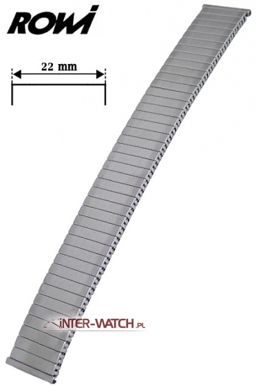 Bransoleta do zegarka niemieckiej firmy ROWI. Elastyczna bransoleta do męskiego zegarka wykonana ze stali. Jednoczęściowa bransoleta do zegarka o szerokości 22,0 mm przy kopercie z możliwością dopasowania-zwężenia do 20,0 mm. Bardzo trwała i solidna konstrukcja bransolety w której zostosowano klamry skrętne jako elementy elastyczne. Bransoleta nie "szczypie" nadgarstka podczas użytkowania. Powierzchnia bransolety stalowa polerowana i matowana ozdobnie. Możliwość skracania i wydłużania bransolety.