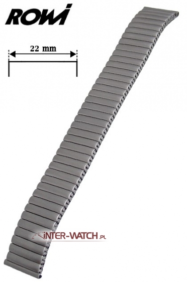 Bransoleta do zegarka niemieckiej firmy ROWI. Elastyczna bransoleta do męskiego zegarka wykonana ze stali. Jednoczęściowa bransoleta do zegarka o szerokości 22,0 mm przy kopercie z możliwością dopasowania-zwężenia do 20,0 mm. Bardzo trwała i solidna konstrukcja bransolety w której zostosowano klamry skrętne jako elementy elastyczne. Bransoleta nie "szczypie" nadgarstka podczas użytkowania. Powierzchnia bransolety stalowa ozdobnie matowana i polerowana. Możliwość skracania i wydłużania bransolety.