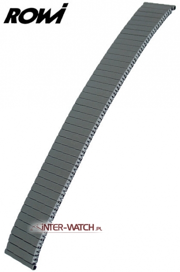 Bransoleta ROWI, elastyczna tytanowa bransoleta do zegarka niemieckiej firmy ROWI. Rozciągana bransoleta do zegarka wykonana z tytanu. Jednoczęściowa bransoleta do zegarka o szerokości 22,0 mm przy kopercie z możliwością dopasowania-zwężenia do 20,0 mm. Bardzo trwała i solidna konstrukcja bransolety w której zostosowano klamry skrętne jako elementy elastyczne. Bransoleta nie "szczypie" nadgarstka podczas użytkowania. Powierzchnia bransolety matowa szaro-popielata. Możliwość skracania i wydłużania bransolety. Całkowicie antyalergiczna bransoteta do zegarka, tytan nie powoduje reakcji alergologicznych.