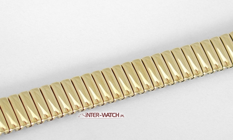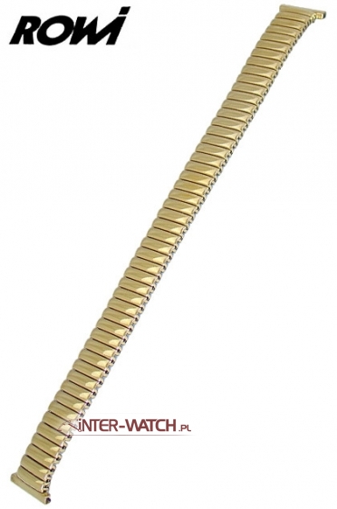 Bransoleta do zegarka niemieckiej firmy ROWI. Elastyczna bransoleta do damskiego zegarka wykonana ze stali. Jednoczęściowa bransoleta do zegarka o szerokości mocowania 14,0 mm przy kopercie z możliwością dopasowania-zwężenia do 10,0 mm. Bardzo trwała i solidna konstrukcja bransolety w której zostosowano klamry skrętne jako elementy elastyczne. Bransoleta nie "szczypie" nadgarstka podczas użytkowania. Powierzchnia bransolety złocona PVD oraz ozdobnie polerowana. Możliwość skracania i wydłużania bransolety.