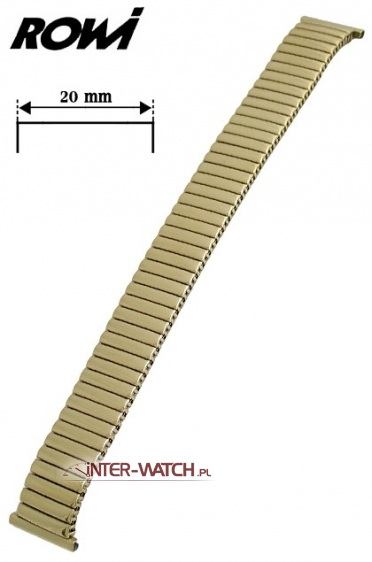 Bransoleta do zegarka niemieckiej firmy ROWI. Elastyczna bransoleta do męskiego zegarka wykonana ze stali. Jednoczęściowa bransoleta do zegarka o szerokości 22,0 mm przy kopercie z możliwością dopasowania-zwężenia do 16,0 mm. Bardzo trwała i solidna konstrukcja bransolety w której zostosowano klamry skrętne jako elementy elastyczne. Bransoleta nie "szczypie" nadgarstka podczas użytkowania. Powierzchnia bransolety złocona PVD polerowana. Możliwość skracania i wydłużania bransolety.
