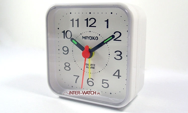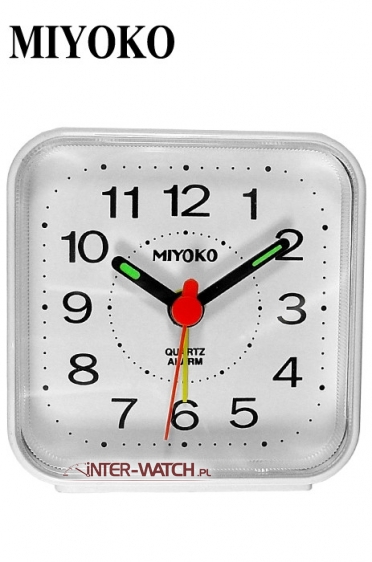 Polecamy klasyczny budzik Miyoko z mechanizmem kwarcowym. Ma³y i estetyczny budzik w bialej obudowie z dobrego tworzywa. Budzik zasilany bateri± LR6 1,5 Volt. Wymiary : 60 mm x 30 mm x 60 mm. Sygna³ bardzo g³o¶ny jednostajnie pulsacyjny w 3-krotnych interwa³ach. Bateria Energizer Ultra Plus LR6 gratis w cenie budzika. Gwarancja 24 miesi±ce.