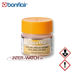 Bonflair Gold Bath to skuteczny p³yn do k±pieli, przeznaczony do pielêgnacji z³otej bi¿uterii oraz elementów wykonanych z platyny, a tak¿e ozdobionych diamentami, szafirami i rubinami. Dziêki specjalnie opracowanej formule z pow³ok± antykorozyjn± ATP7, preparat nie tylko przywraca naturalny blask, ale równie¿ zabezpiecza przed ponownym matowieniem i procesami korozyjnymi.