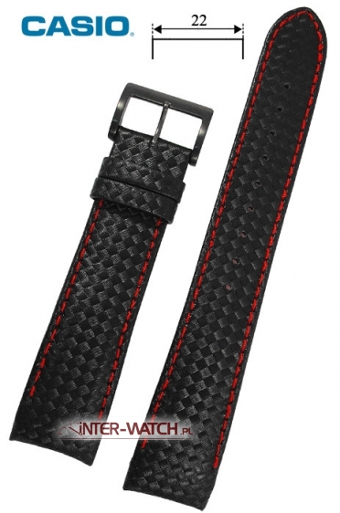 Oryginalny pasek do zegarka Casio EQW-M710L-1AD. Polecamy CZARNY skórzany pasek Casio EQW-M710 obszywany włóknem węglowym Carbon, od spodu czerwona futrówka, klamerka stalowa oksydowana czarna. Pasek zakończony adapterem z tworzywa dopasowanym do kształtu koperty. Pasek do zegarków Casio: