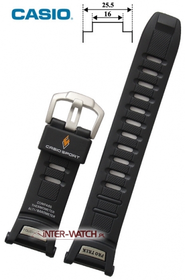 Oryginalny pasek do zegarka Casio PRW-1500-1V. Polecamy czarny poliuretanowy pasek Casio Pro Trek Tough Solar. Pasek do zegarka Casio PRW-1500 dedykowany do modeli: