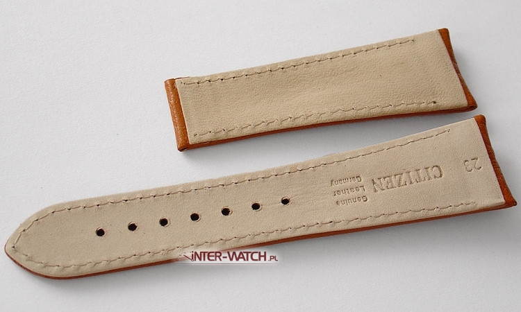 Oryginalny pasek do zegarka Citizen Promaster 23 mm, skórzany pasek do zegarka Citizen 23 mm - jasny brąz, przeszywany białą nicią i lekko pogrubiany na 1/3 długosci, pasek zwężany przy zamku do 18 mm, pasek bez zamka. Polecamy skórzany pasek Citizen Promaster Eco Drive Radiocontrolled o referencji na pokrywie koperty: E670-S035899. Pasek do zegarków Citizen :
