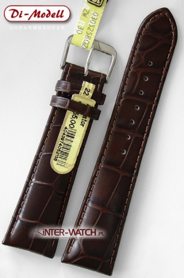 Pasek do zegarka 22 mm, pasek Di-Modell Alligator Louisiana 1600.2822 szerokości 22 mm przy kopercie, kolor No.28 - brązowy pasek do zegarka 22 mm z prawdziwego Alligatora. Polecamy luksusowy pasek do zegarka Di-Modell Alligator Louisiana z ekskluzywnej kolekcji Noble House. Antyalergiczny pasek do zegarka wykonany ręcznie z prawdziwej skóry Alligatora z Luizjany. Do wykonania tego paska do zegarka wykorzystano specjalnie selekcjonowaną skórę Aligatora. Zastosowano patentowy system Areo-Futter który zapobiega akumulowaniu się wilgoci wewnątrz paska co przedłuża jego żywotność oraz poprawia komfort użytkowania, oraz patentowe zabezpieczenie przed przesuwanien się szlufki. Pasek do zegarka Di-Modell Alligator jest estetyczny, trwały a jednocześnie miękki i bardzo wygodny w użytkowaniu. Pasek do zegarka przeszywany na całej długości i wykańczany po bokach ozdobnym szwem. Dodatkowo pasek jest specjalnie pogrubiany na 1 / 3 długości. Szerokość paska nieznacznie zwężana na długości przy klamerce do 18 mm. Klamerka stalowa - sygnowana, stalowa lub złocona do wyboru. Pasek Di-Modell Alligator to ekskluzywny i elegancki pasek do zegarka dostępny w długości standardowej L oraz LXL. Prosimy o dokładne sprawdzenie szerokości mocowania paska przy kopercie zegarka oraz długości całkowitej paska. Oferujemy najlepsze paski do zegarków 20 mm fachowo wykonane z najlepszych skór egzotycznych..