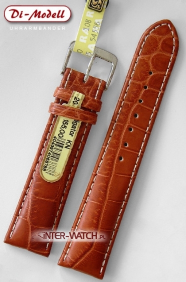 Pasek do zegarka 20 mm Aligator, pasek Di-Modell Alligator KN 1603.1120 szerokości 20 mm przy kopercie, kolor No.11 - brązowy pasek do zegarka 20 mm. Luksusowy pasek do zegarka, pasek Di-Modell Alligator Louisiana z ekskluzywnej kolekcji Noble House. Dobry pasek do zegarka 20 mm wykonany ręcznie z prawdziwej skóry Aligatora z Louizjany. Do wykonania tego paska do zegarka wykorzystano specjalnie selekcjonowaną skórę Aligatora. Zastosowano patentowy system Areo-Futter który zapobiega akumulowaniu się wilgoci wewnątrz paska co przedłuża jego żywotność oraz poprawia komfort użytkowania, oraz patentowe zabezpieczenie przed przesuwanien się szlufki. Pasek do zegarka Di-Modell Alligator jest estetyczny, trwały a jednocześnie miękki i bardzo wygodny w użytkowaniu. Pasek do zegarka przeszywany kontrastowo jasną nicią na całej długości i wykańczany po bokach ozdobnym szwem. Dodatkowo pasek jest specjalnie pogrubiany na 1 / 3 długości. Szerokość paska nieznacznie zwężana na długości przy klamerce do 18 mm. Klamerka stalowa - sygnowana, stalowa lub złocona do wyboru. Pasek Di-Modell Alligator to ekskluzywny i elegancki pasek do zegarka dostępny w długości standardowej L. Prosimy o dokładne sprawdzenie szerokości mocowania paska przy kopercie zegarka oraz długości całkowitej paska. Oferujemy fachowy wykonany pasek do zegarka 20 mm z naturalnej skóry Aligatora w kolorze jasny brąz.
